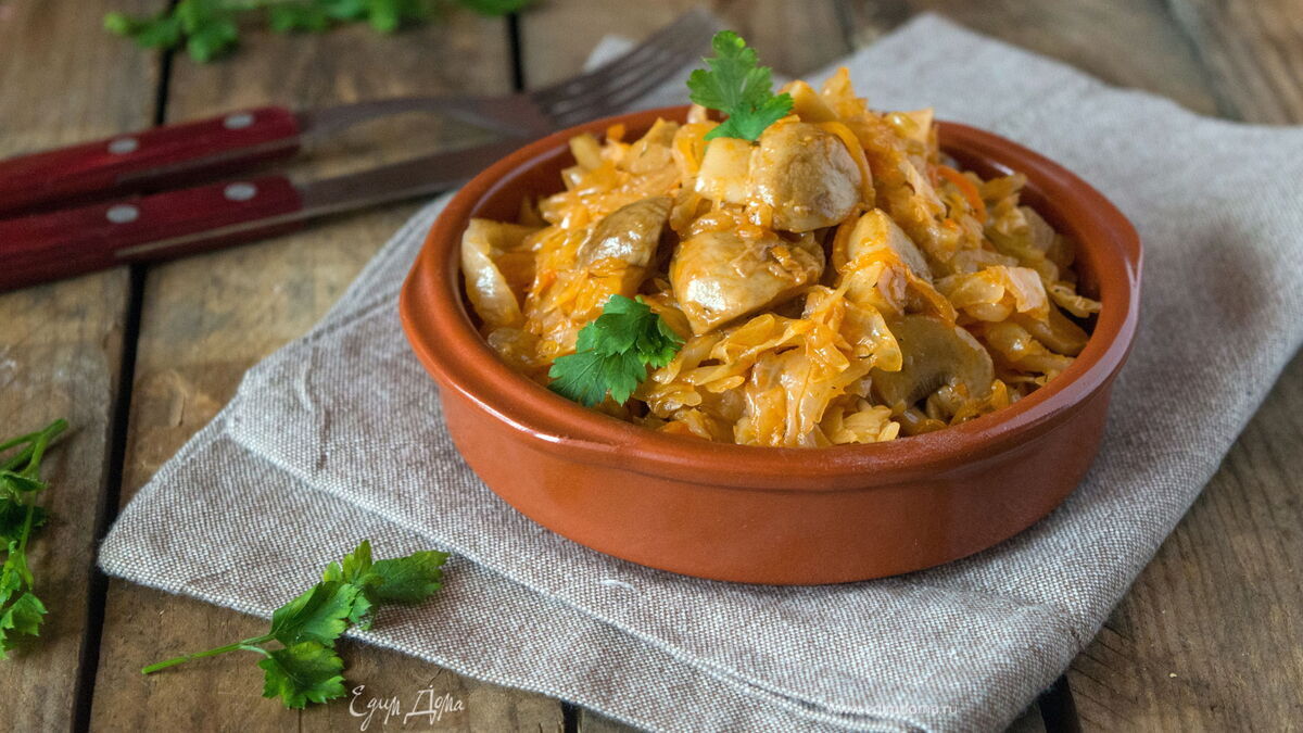Предлагаем приготовить нежную тушеную капусту на сковороде с грибами. Шампиньоны можно заменить на лесные грибы или вешенки. Блюдо подойдет в качестве гарнира к мясу.