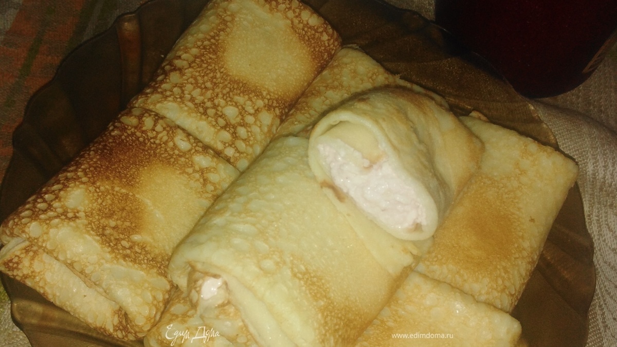 Блинчики на воде с творогом и малиновым желе