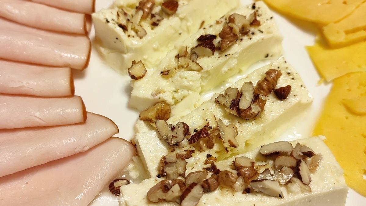 Фету выложить в форму для запекания. Можно целым куском, а можно порционно нарезать. Смешать оливковое масло и мед до однородности. Вылить смесь на фету, посыпать орехами и поставить в духовку на 15 минут при температуре 200°C.