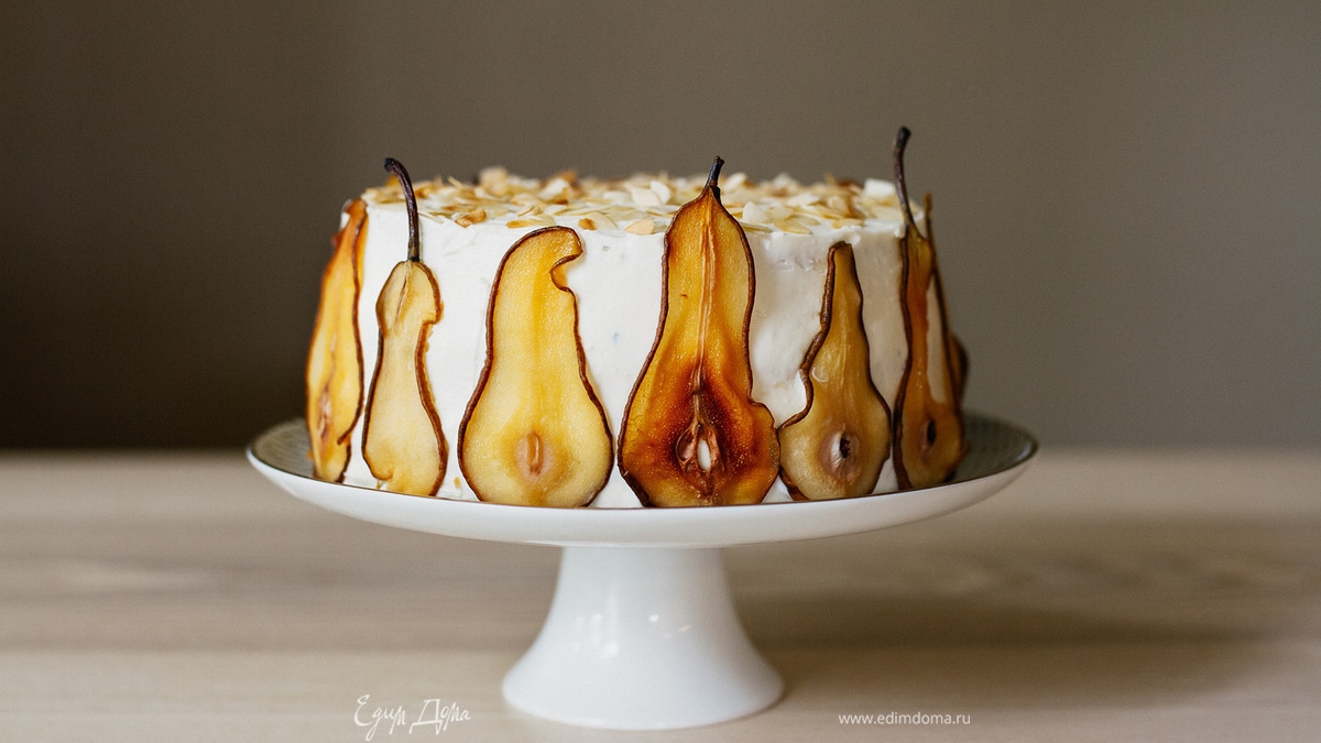 Торт с грушей и творожным кремом