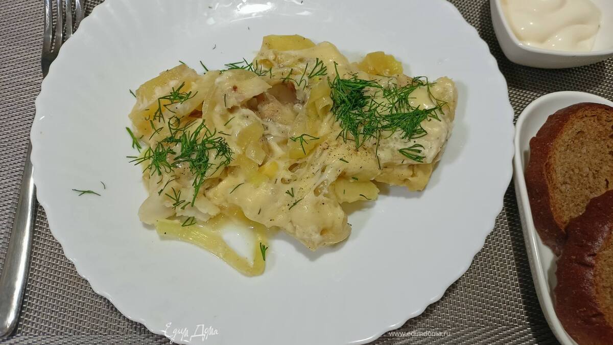 Хек, тушенный с картофелем в мультиварке