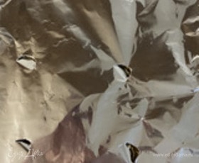 Достаем противень, даем постоять 2–3 минуты. Снимаем фольгу.
