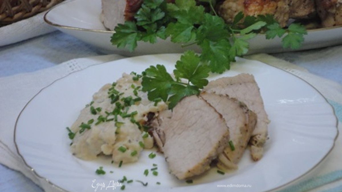 Рецепт Юлии Высоцкой с упаковки пакетов для запекания. Это действительно праздничное блюдо! Свинина очень сочная, гарнир из фасоли оригинальный.
