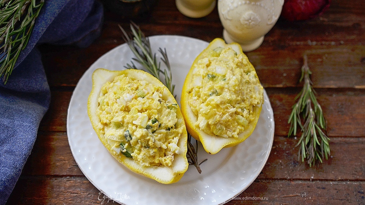 Выложите салат в лимонные половинки и подавайте к столу. - Шаг 12