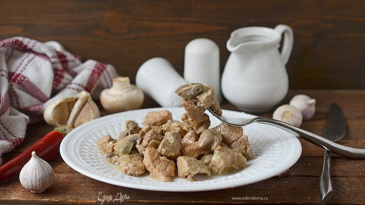 Свинина, тушенная с грибами в мультиварке