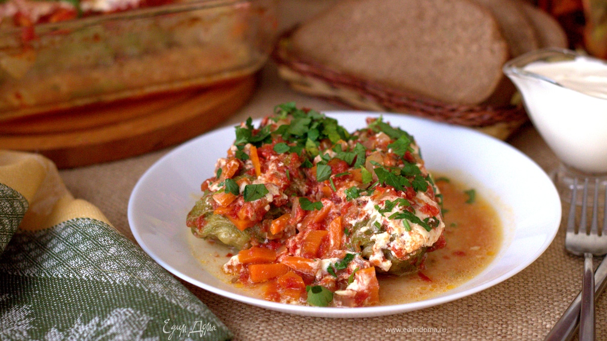 Подавать голубцы со сметаной и рубленой зеленью. Приятного аппетита!
