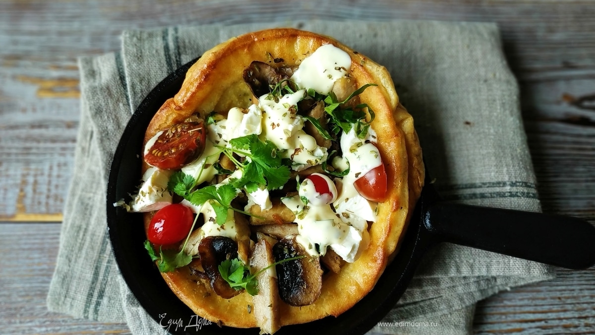 Запеченный в духовке блин с любимой начинкой станет отличным началом дня.
