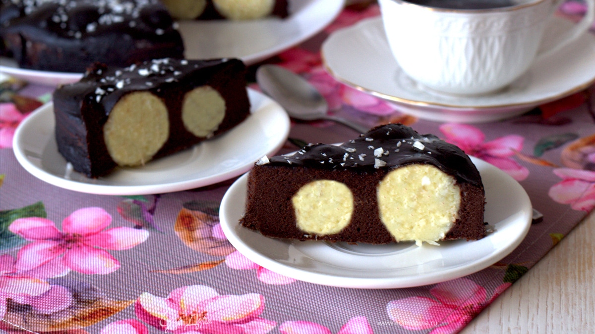Шоколадный пирог с творожными шариками