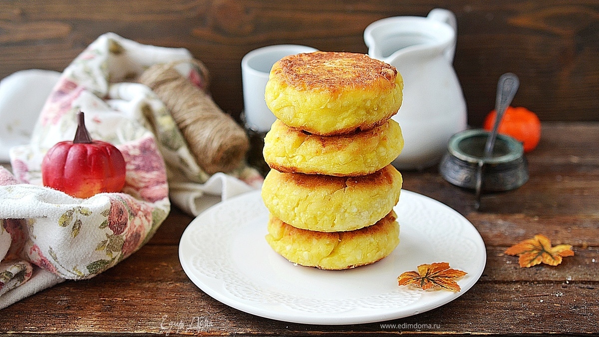 Впервые готовила это блюдо, и результат меня порадовал. Сырники получились нежными, сочными и с хрустящей корочкой. Не знаю, что дает добавление картофеля в тесто, но вкус готового блюда он не меняет — получаются классические сырники.