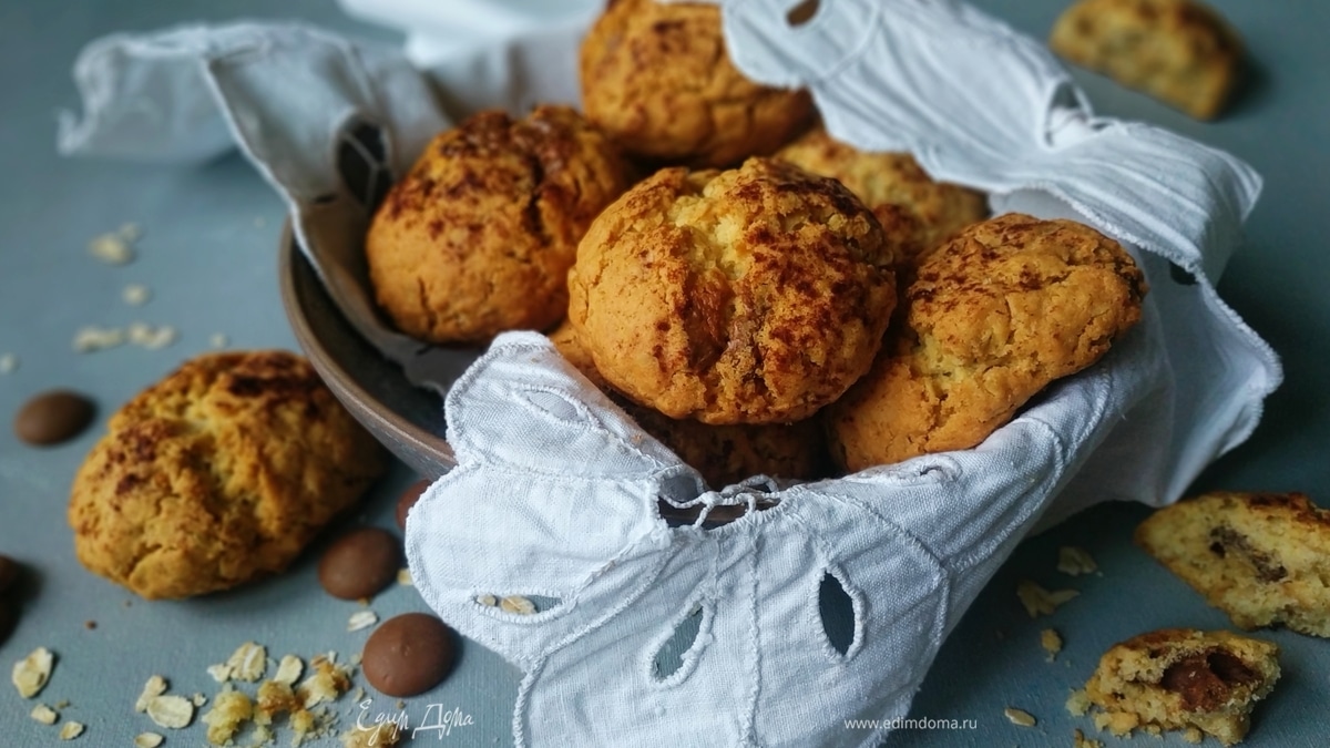 Вкусное сытное печенье с приятной ароматной корочкой и карамельным шоколадом к утреннему кофе.