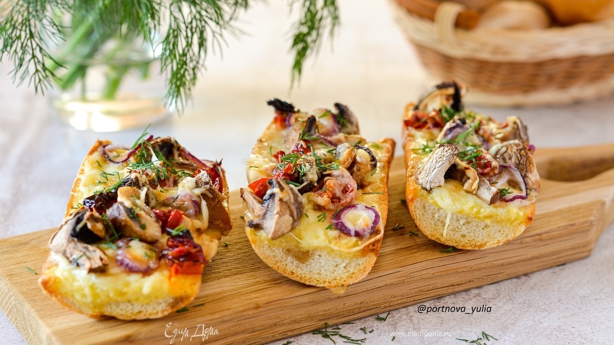 Я не знаю, как правильно назвать это блюдо: что-то среднее между бутербродом, пиццей, брускеттой и гренкой. Но главное, что это очень вкусно, сытно и быстро!