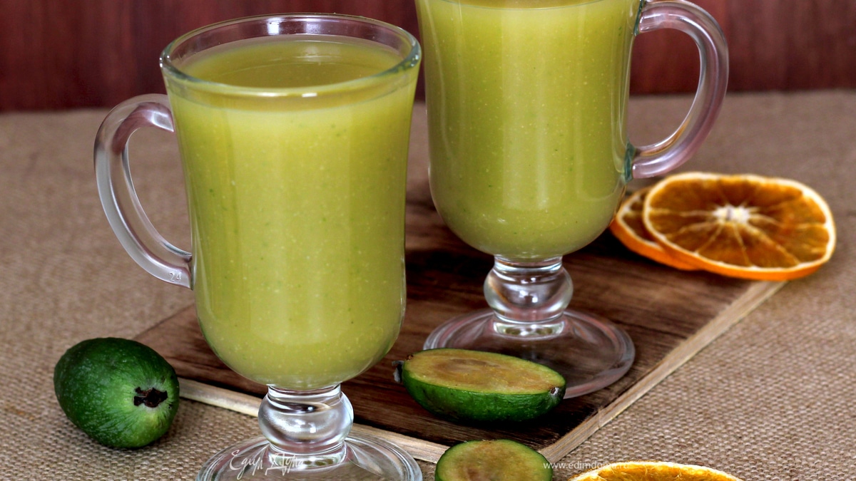 В высокой емкости смешать апельсиновый сок и кусочки фейхоа и пробить погружным блендером. - Шаг 5