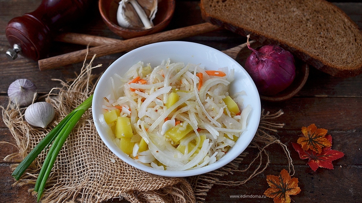 Деревенский салат с квашеной капустой