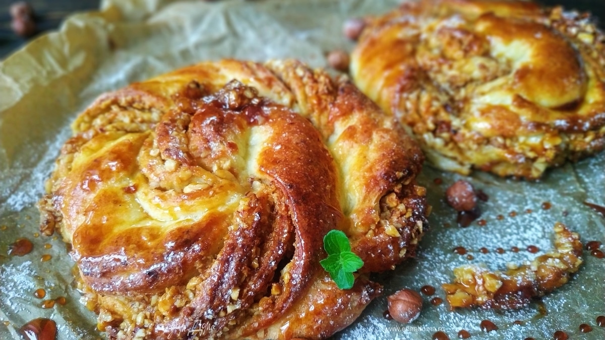 1Такую выпечку можно формовать как угодно, способов много. Здесь я не совсем поняла. Рулет разрезается не до конца. Края скручиваются каждый по отдельности. А потом каждый край укладывается сам по себе? Каким образом? Друг на друга? Как в краффинах?