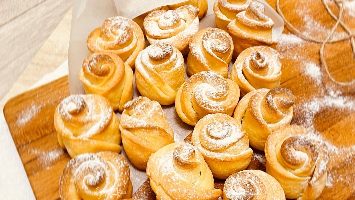 На противень, покрытый пергаментом, раскладываем «розочки» на небольшом расстоянии друг от друга. - Шаг 7