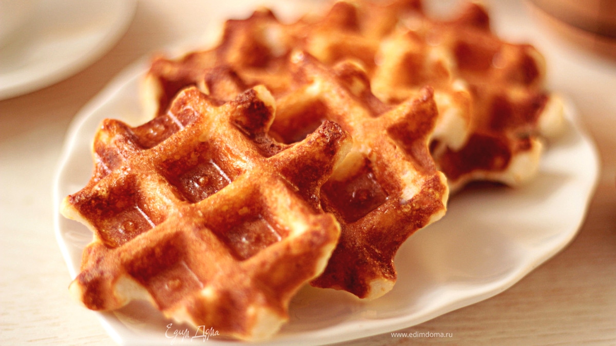 Разогреваем вафельницу до нужной температуры (ориентируйтесь по своей вафельнице). Выкладываем по 1 ст. л. теста и выпекаем вафли 3–5 минут, время зависит от вашей вафельницы. По желанию можно выпекать большие вафли. - Шаг 6