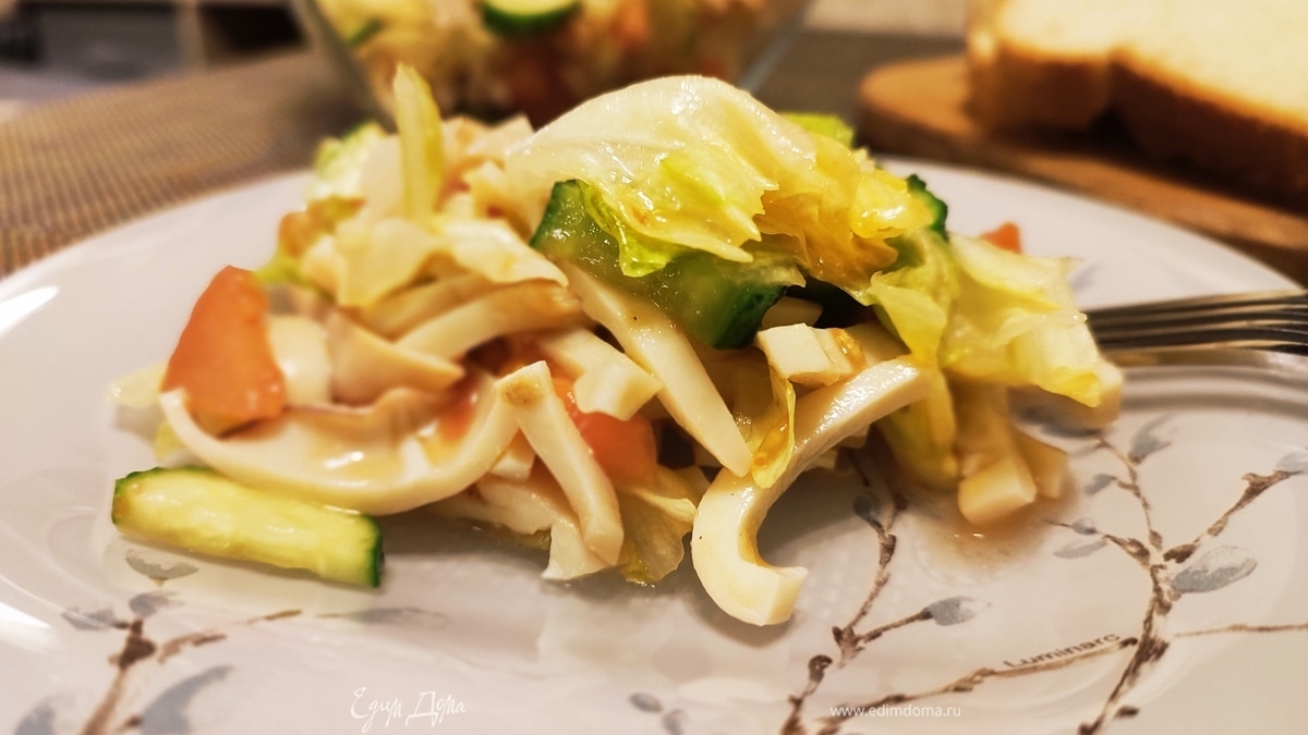 Кальмары отварить, остудить и нарезать соломкой. - Шаг 2