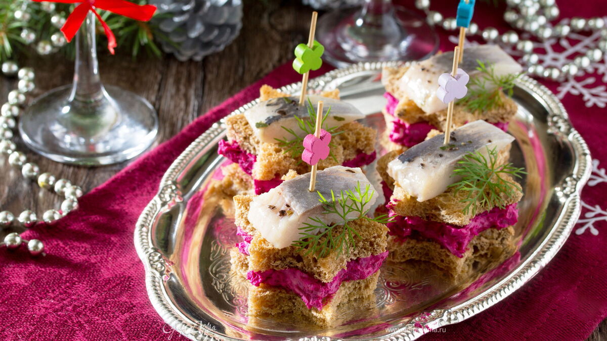 Подготовка к Новому году начинается... Маленькие эффектные канапе «Селедка под шубой» — незаменимая закуска на праздничном столе. Вариантов приготовления блюда очень много, вот один из рецептов.