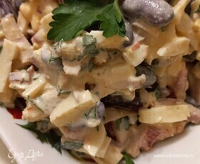 Дорогие кулинары, предлагаю вам рецепт вкусного салата с копченым мясом на праздничный стол.