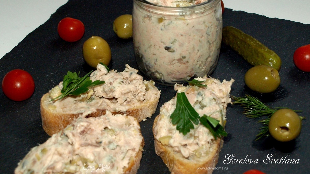 Рыбу мелко порубить, удалив предварительно кости и кожу. Сливочное масло комнатной температуры, оливковое масло и мягкий козий сыр смешать в однородную массу. Оливки и каперсы мелко порубить. Все складываем в миску, добавляем соль и перец по вкусу, щепотку ароматных трав. Перемешать до однородности. - Шаг 4