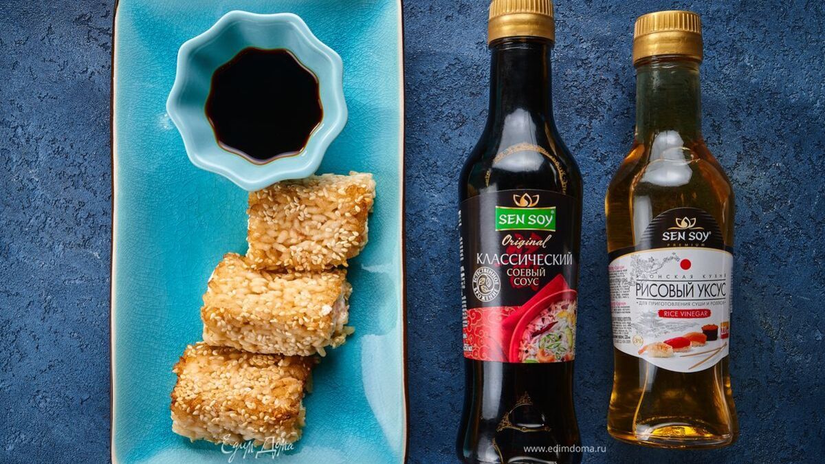 Подавайте в горячем или холодном виде. Такая закуска будет особенно хороша в компании с соусами Sen Soy: темным соевым или классическим.