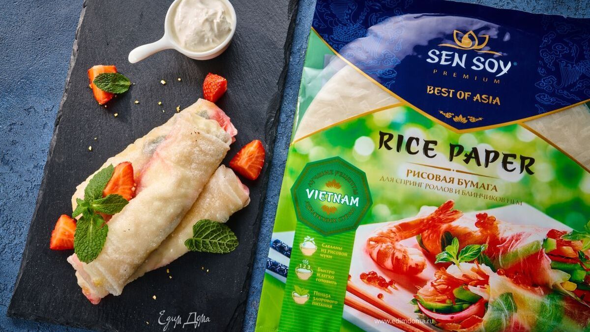 Сладкие спринг-роллы с творогом и клубникой