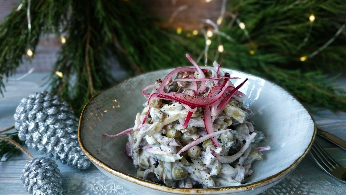 Салат с сердцем и маринованными огурцами