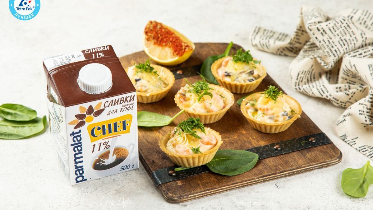«морской» жюльен, запеченный в корзиночках