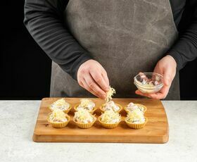 Сверху посыпьте тертым сыром и запекайте при 200°C около 5 минут.