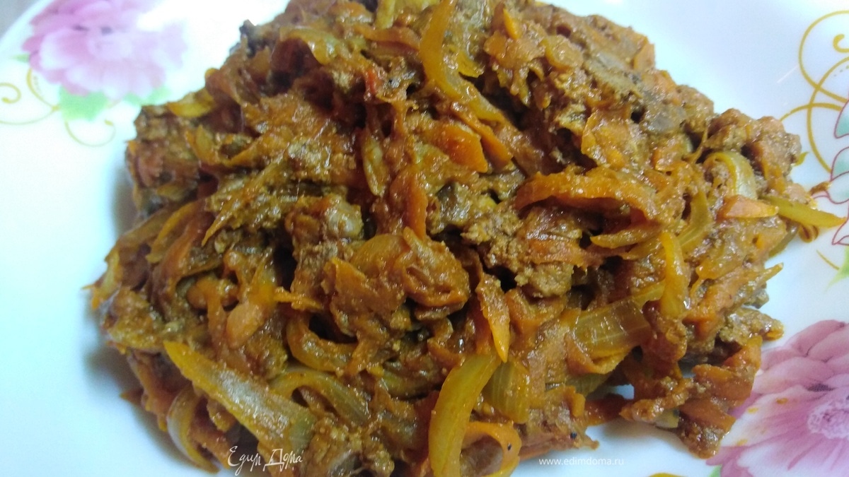 Печень нарезать и соединить со смесью овощей с грибами. Посолить, поперчить. Жарить, помешивая, 5–7 минут. - Шаг 5