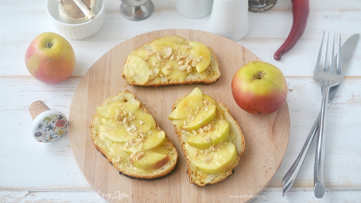 Бутерброды на завтрак с яблоком, сыром и орехами