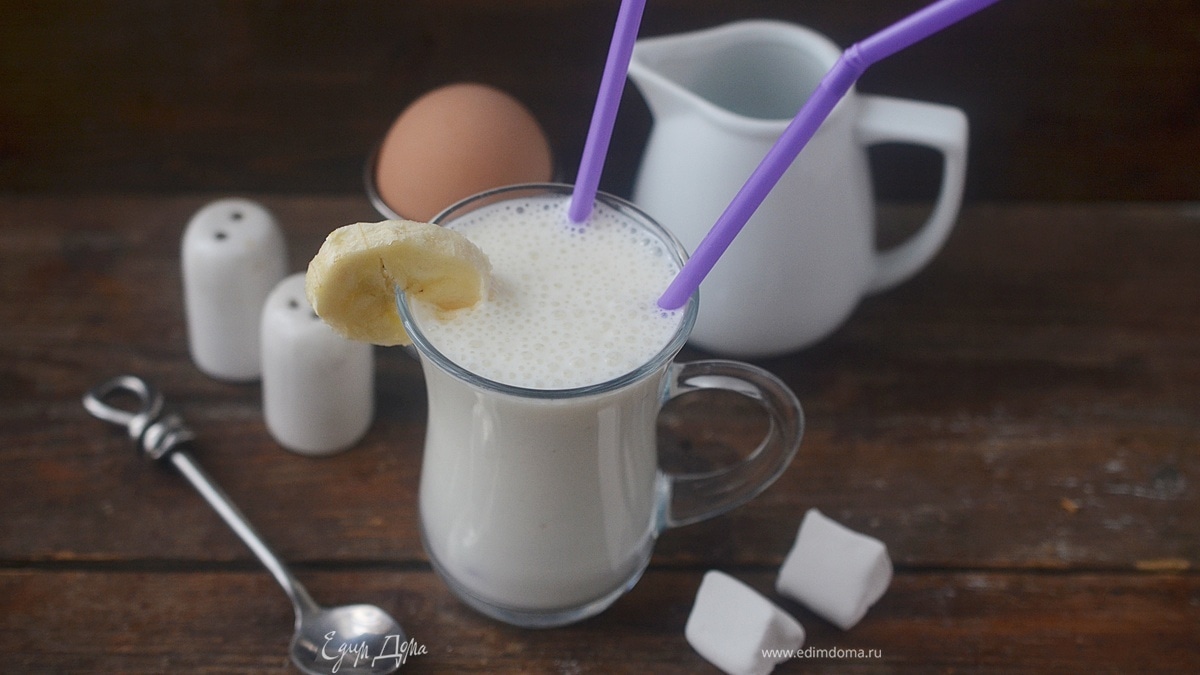 Кефирный коктейль с зефиром и бананом