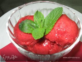 По этому рецепту можно сделать не только лимонное, но и мандариновое или апельсиновое сорбе. Готовить его лучше заранее, за пару дней до праздника. Перед сервировкой можно взбить застывшую массу блендером, но лично мне нравится, когда в сорбе есть кристаллики льда!