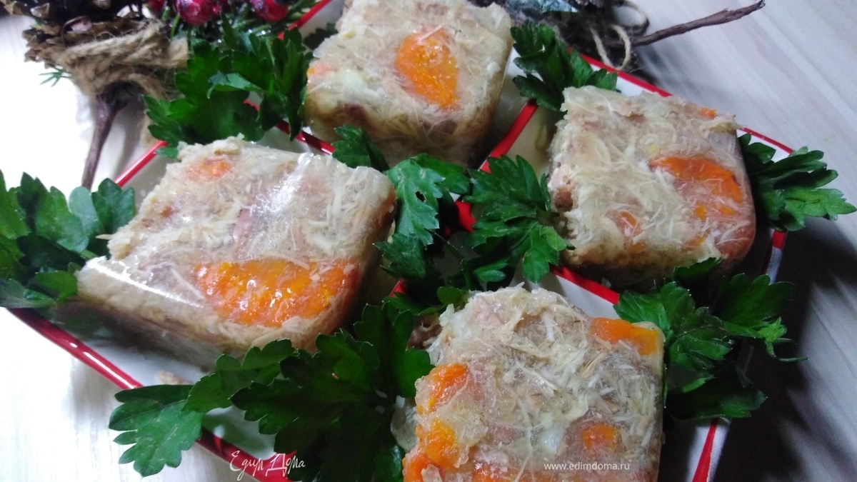 Соединить бульон с мясом, добавить чеснок. Разлить по формам. Дать полностью остыть. Убрать в холодильник. - Шаг 8