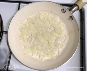 Обжариваем лук на растительном масле до золотистости (примерно одну минуту).