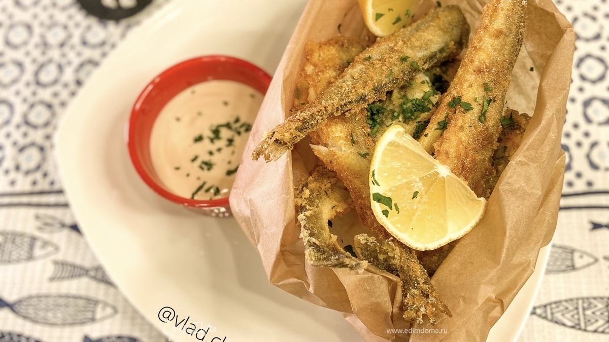 - Шаг 1Технология самая простая: высушить рыбку бумажным полотенцем, обвалять в смеси кукурузной муки и соли и отправить в разогретое на среднем огне масло. Обжариваем до образования корочки.