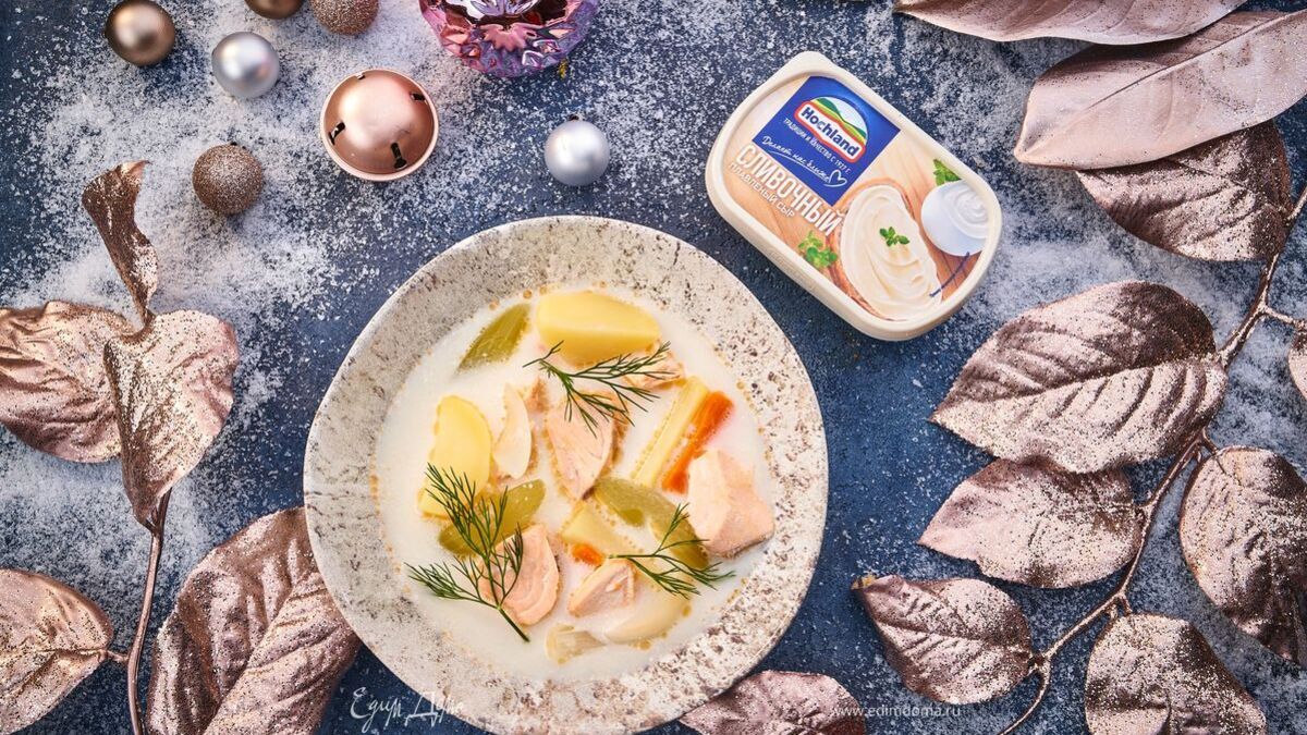 Праздничная уха с семгой и плавленым сыром