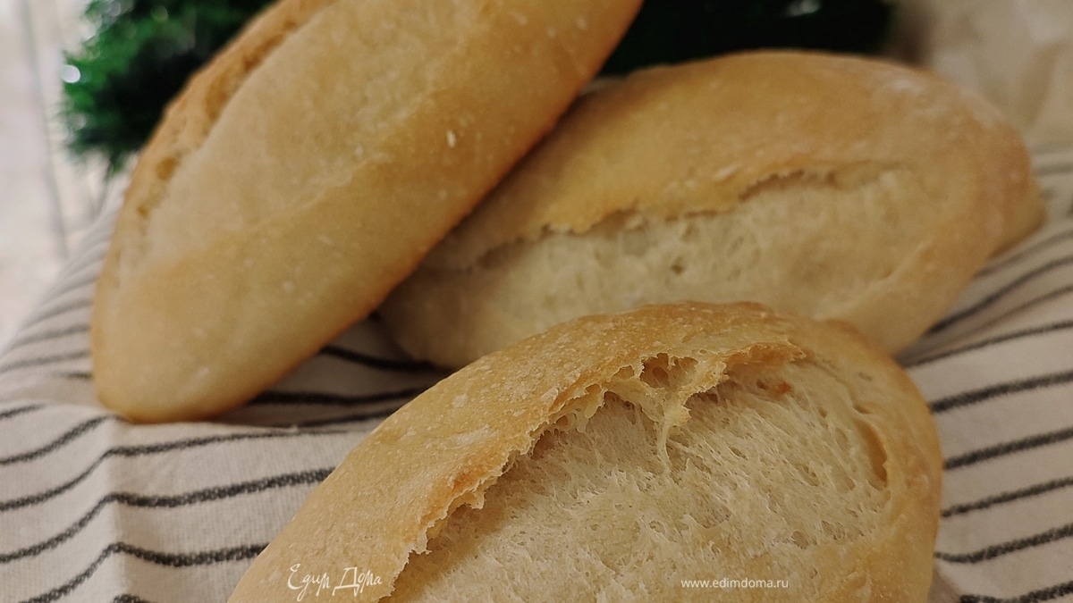 Из каждого шарика сформировать продолговатые булочки с острыми носиками. Оставить для расстойки на 1 час. Потом сделать острым ножом надрезы сбоку. Поставить выпекаться сначала на 10 минут при 250°C с паром. Потом уменьшить температуру до 200°C и выпекать еще 20 минут. - Шаг 5