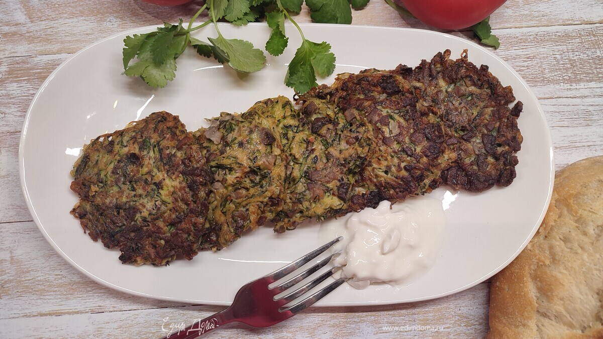Кабачковые оладьи с шампиньонами