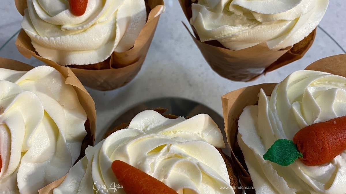 С маффинами легко экспериментировать — вместо моркови можно добавить цукини или кабачок, свеклу или даже натертое яблоко, а можно вообще сделать все четыре варианта сразу! Если любите яркий аромат цитрусовых, добавьте в крем не только сок, но еще и цедру лимона или апельсина, а если не очень хочется возиться с кремом, разведите сахарную пудру лимонным соком и покройте маффины этой глазурью или просто присыпьте их сахарной пудрой, какао. Я нашла для украшения марципановые морковки, но на самом деле и здесь возможны варианты!