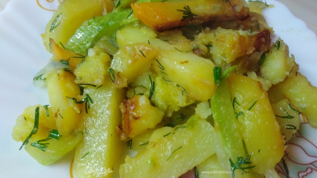 Картофель почистить, нарезать. Выложить в сковороду. Накрыть крышкой и на сильном огне жарить 5 минут. - Шаг 3