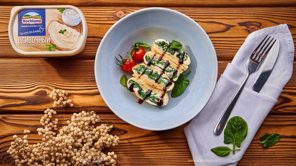 Добавьте к сыру шпинат, перемешайте. - Шаг 10
