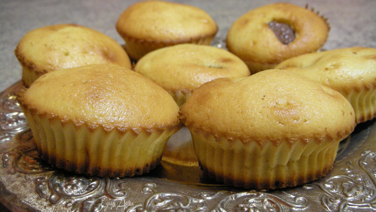 - Шаг 11. Взбить яйца с сахаром в белую пышную массу. 2. Ввести в яичную смесь просеянную муку, ванилин и сливки. Аккуратно вымесить тесто деревянной ложкой. 3. Разложить тесто по формочкам (чуть больше чем на половину формочки). В середину положить "сюрприз". В моем случае был молочный шоколад. 4. Поставить формочки в предварительно разогретую до 190 градусов духовку и выпекать 15-20 мин (в зависимости от размера кексов).