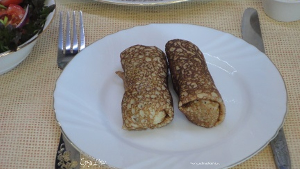 В этом рецепте меня покорила начинка. Она такая сливочная! Такие блинчики можно подавать и со свежим салатом, и с соусом из йогурта, чеснока и лимонной цедры. Это практически полноценный обед.