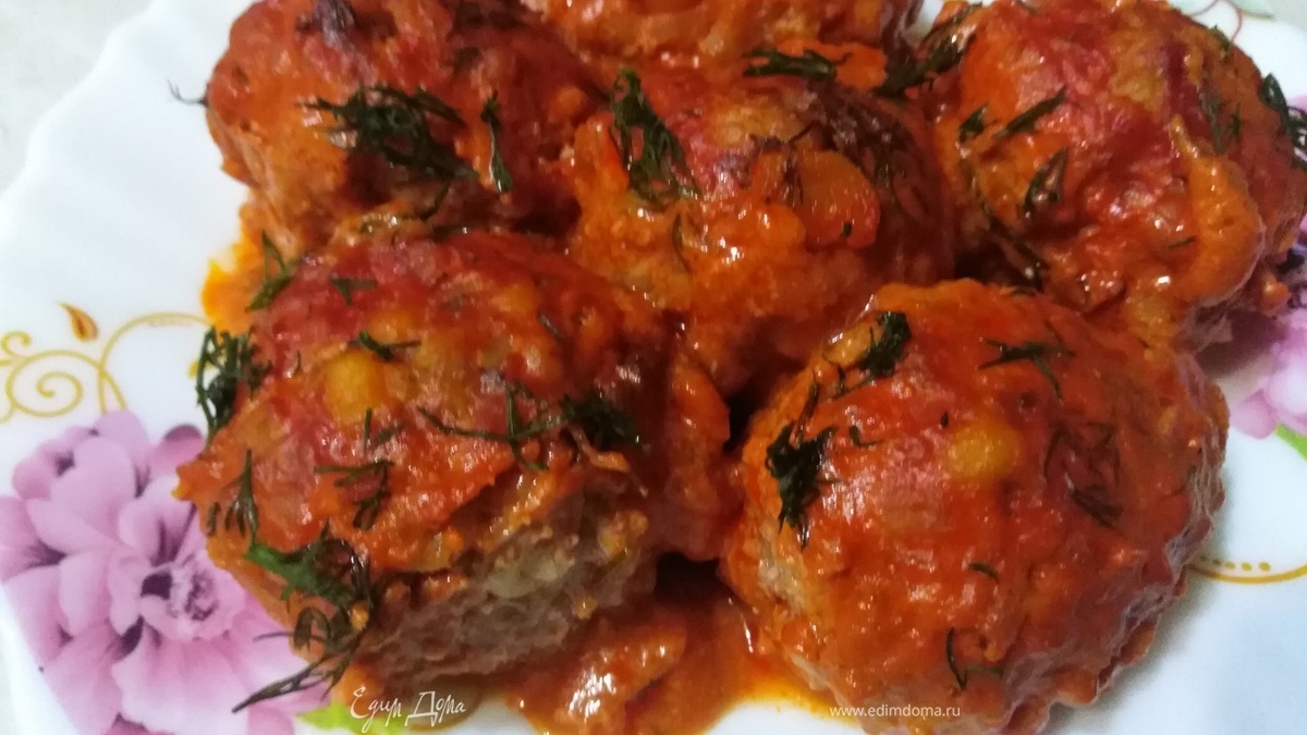 Залить соусом тефтели. Накрыть форму фольгой. Поставить в разогретую до 190°C духовку . - Шаг 7