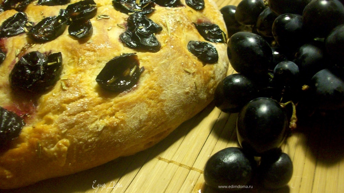 Лепешку переложим на пергамет. Сверху выложим виноград вместе с маслом. Накроем пленкой и оставим подходить еще на 10-15 минут, можно больше. - Шаг 5