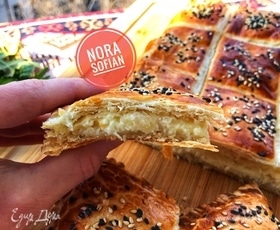 Очень вкусный и простой в приготовлении пирог. Я использовала два вида сыра: сулугуни и имеретинский, но также отлично подойдет, например, смесь моцареллы и феты или адыгейский сыр.