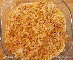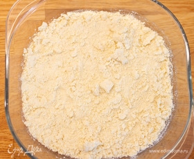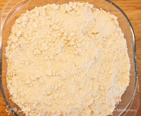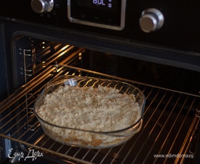 Форму смазать сливочным маслом, выложить 1/2 крошки.