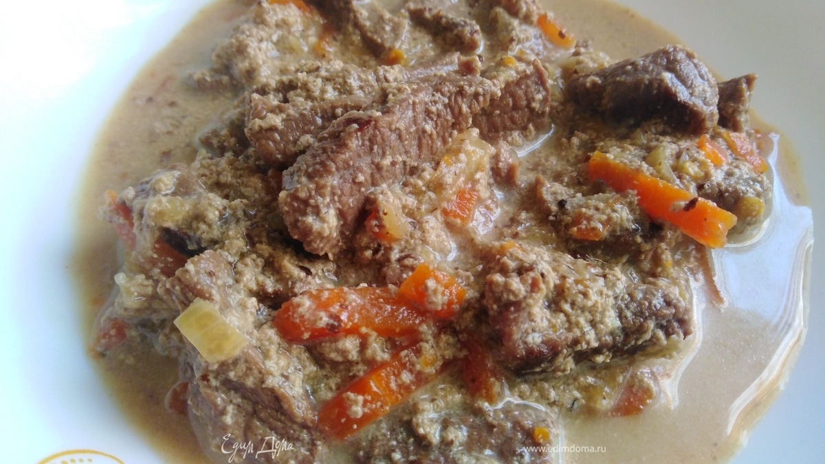 Обжарить. Влить молоко. Довести до кипения. Убавить огонь до минимума. Томить под крышкой 1 час. - Шаг 4