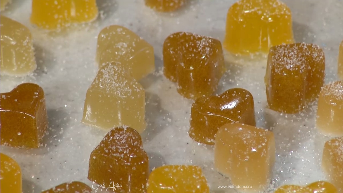Что такое для вас вкус детства? Для меня это домашние конфеты! Единственный минус — хранить их нужно в холодильнике. Если захотите сделать такие конфеты абсолютно вегетарианскими, замените желатин на агар-агар. Сахарный песок для посыпки неплохо смешать с цедрой апельсина или лимона — конфеты получатся еще вкуснее!